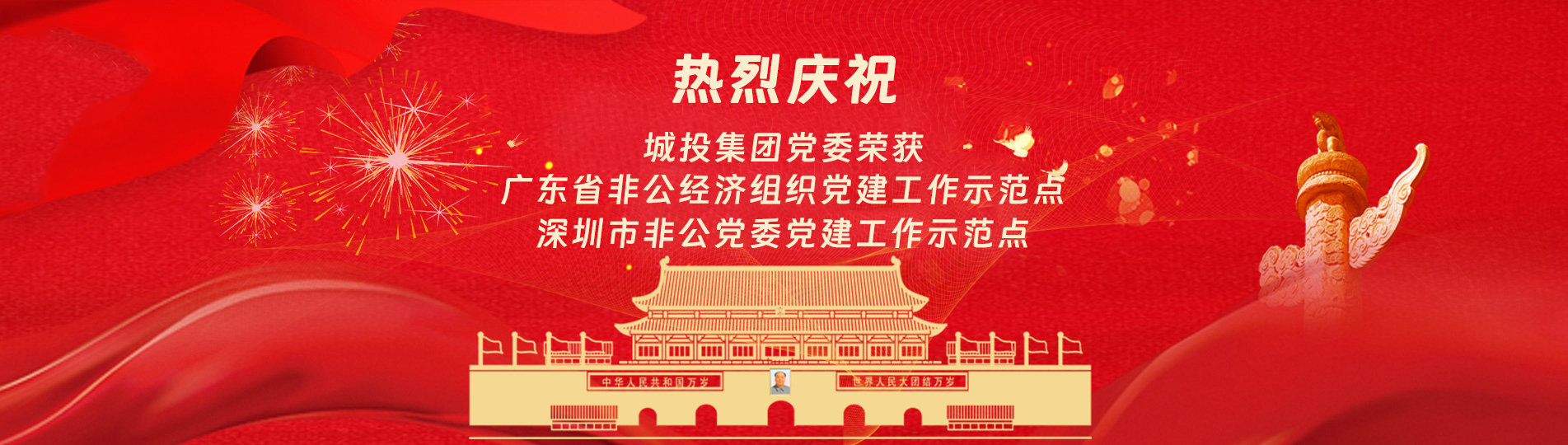 在上級黨委的正確領導下,在城投集團的大力支持下,集團黨委緊緊圍繞企業發展戰略,將黨建引領核心貫穿始終,以五心工程(即思政建設核心工程、經營發展中心工程、企業文化向心工程、黨建品牌匠心工程、服務基層愛心工程)為抓手,大膽探索,勇于突破和創新,不斷形成城投黨建特色,有效輸出城投實踐經驗,充分發揮紅色引擎作用,先后獲得深圳市非公黨委黨建工作示范點深圳市兩新組織黨建工作示范點、深圳市文明單位深圳市先進基層黨組織廣東省非公有制經濟領域黨建工作示范點等榮譽稱號。